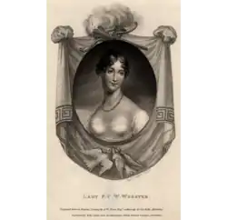 In 1822 Webster was knighted.[30] That year, he was attempting a love affair with Lady Hardy, wife of Sir Thomas Hardy, 1st Baronet.[31] (She in turn was at that time conducting "a kind of love affair on paper" with Byron, a distant relative of hers.[32])