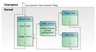 While applying hot patches, kGraft does not require a running kernel to be stopped for patched versions of functions to be introduced into it. Instead of replacing functions atomically, kGraft provides consistent "world views" (or "universes") to userspace processes, kernel threads and interrupt handlers, which are monitored during their execution so the original versions of patched kernel functions can continue to be used. To accomplish that, kGraft maintains original versions of patched functions in a read-copy-update (RCU) fashion, and dynamically selects between the original and patched versions depending on which process, kernel thread or interrupt handler executes them. More specifically, original versions of functions continue to be used—at the time when a hot patch is applied—for processes currently executing within the kernel space, for kernel threads until they reach their completion points, and for currently executing interrupt handlers.[3][4][8][9]