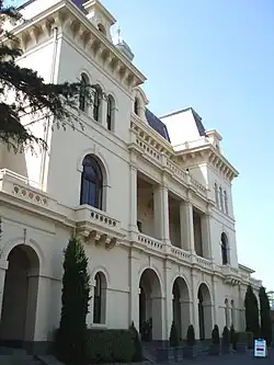 The first purpose-built asylum in the Colony of Victoria, Kew was also larger and more expensive than its sister asylums at Ararat and Beechworth. The asylum's buildings are typical examples of the Italianate architecture[3] style which was popular in Victorian Melbourne. Designed to be elegant, beautiful, yet substantial, and to be viewed as "a magnificent asylum for the insane" with the aim of portraying Melbourne as a civilised and benevolent city whilst avoiding the jail-like appearance of other asylums.[4][5] These aims were furthered by the use of low ha-ha walls and extensively landscaped grounds. Long considered of cultural and historic significance to Melbourne, Kew Asylum and its complex of buildings were registered on the Register of the National Estate in March 1978.[6]