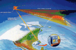 The LACE mission concept began in February 1985 when the Strategic Defense Initiative Organization approached the Naval Research Laboratory to develop an experiment to characterize laser signals transmitted and received through the Earth's atmosphere from a ground station to an orbiting experiment. The laboratory had been involved with spaceflight since the dawn of the space race, having led the Navy's Vanguard program up until 1959. Since then the laboratory had developed satellites to perform experiments relating to solar radiation, radio transmission through the ionosphere, gravity gradient stabilization, and ocean surveillance, among others.[5]