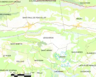 Lesquerde is located in the canton of La Vallée de l'Agly and in the arrondissement of Perpignan.