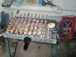 A popular meal of skewered and grilled cubes of meat.[67] |