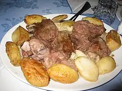 | Souvlaki | Skewered pieces of pork meat.[13] | |