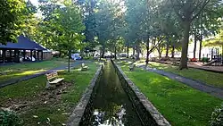 The Reading and Columbia Railroad operated passenger service through downtown Lititz until 1952. Norfolk Southern continues to operate freight service to Lancaster, while the line between Lititz and Ephrata has been converted into a rail trail.[20] A replica of the Lititz Depot was constructed at its former location in Lititz Springs Park in 1999, along with a small museum in a Reading caboose.[21]