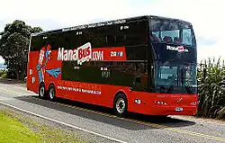 ManaBus.com[1] was an intercity coach service operator in New Zealand. The company was owned by Brian Souter's InMotion Group.[2][3] ManaBus and Nakedbus ceased operation on 15 July 2018, with the bus fleets being sold to Ritchies Transport Holdings,[4] part owner of rival coach company InterCity.