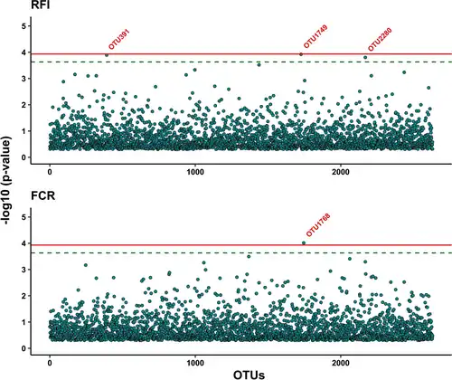 - ^ a b Aliakbari, Amir; Zemb, Olivier; Cauquil, Laurent; Barilly, Céline; Billon, Yvon; Gilbert, Hélène (2022-04-25). "Microbiability and microbiome-wide association analyses of feed efficiency and performance traits in pigs". Genetics Selection Evolution. 54 (1): 29. doi:10.1186/s12711-022-00717-7. ISSN 1297-9686. PMC 9036775. PMID 35468740.