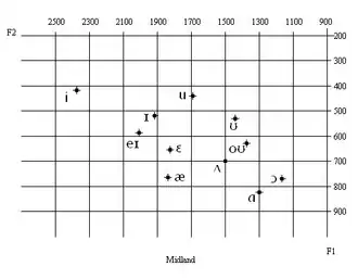 - Fronting of /aʊ/ (MOUTH): the diphthong /aʊ/ (as in mouth) has a fronter nucleus than /aɪ/, approaching [æʊ~ɛɔ].[22]