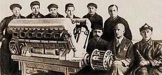 The M-34 began development in 1928 as a replacement for the Mikulin M-17, a license-built copy of the BMW VI. It had similar dimensions and attachment points, but was otherwise an entirely new design. It was a direct-drive, block-type engine with the cylinder block connected by long internal studs with centrally coupled articulated connecting rods. The development of the engine process was prolonged, with the engineering drawings not completed until April 1931. The first engine was delivered to TsIAM (Russian: Центральный институт авиационного моторостроения, romanized: Tsentralniy institut aviatsionnogo motorostroeniya, lit. 'Central Aviation Motors Institute') on 21 September 1931 for bench testing with imported carburetors and magnetos. It began state testing in November 1931, but failed. It was submitted again a year later with Soviet-designed K-34 carburetors, but was again rejected. It was resubmitted in January 1933, but again failed. It was flight-tested in a Tupolev TB-3 in October 1933.[3]