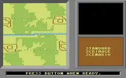 Each player is presented with a map of which they control the lower half. Across the center is a line, below which they can set up their units. Each unit which crosses this line gains a point. If the ComCen crosses it, many additional points are scored. A second line is three quarters of the way up the screen; crossing it with units gives additional points. Crossing it with the ComCen is one way to win the game.