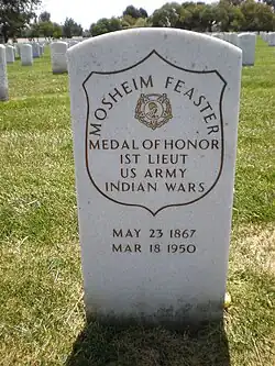 First Sergeant Mosheim Feaster (May 27, 1867 – March 18, 1950) was an American soldier in the U.S. Army who served with the 7th U.S. Cavalry during the Indian Wars. He was one of twenty men awarded the Medal of Honor for extraordinary gallantry at the Battle of Wounded Knee, but now called the Wounded Knee Massacre, on December 29, 1890. He later served in the Spanish–American War.