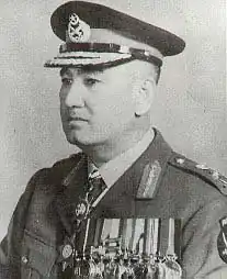 After his schooling, he was recruited to the British Indian Army as a Jawan in 1926 and eventually joined the 4th Hazara Pioneers after being promoted as the Naik – a non-commissioned officer in the British Indian Army.[6] He was selected to join the Indian Military Academy (IMA) at Dehra Dun as a cadet in October 1932. The first batch of IMA, known as "The Pioneers", also produced India's first Field Marshal Sam Manekshaw, and Smith Dun, the future commander-in-chief of the Burmese Army.[1] In 1935, he was commissioned from the IMA, Dehradun following a two years and six months long military training.[7] He was said to be an excellent sportsman and played hockey.[2] In 1936, he was posted to the 6th Royal Battalion of the 13th Frontier Force Rifles as a Platoon Commander and saw actions in the violent Waziristan campaign in 1936 until 1938.[3] He participated well in the World War II on the side of the United Kingdom and served well in the Burma Campaign and North African theatre as part of the Norfolk Regiment of the British Indian Army.[1] In Middle East, he led the company and was listed in mentioned in despatches for "distinguished services in the Middle East during the period February to July 1941" and in the London Gazette 30 December 1941 as a Lieutenant and acting Major.[3]