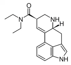 - ^ a b c d e f Hoffman AJ, Nichols DE (September 1985). "Synthesis and LSD-like discriminative stimulus properties in a series of N(6)-alkyl norlysergic acid N,N-diethylamide derivatives". Journal of Medicinal Chemistry. 28 (9): 1252–1255. doi:10.1021/jm00147a022. PMID 4032428.
