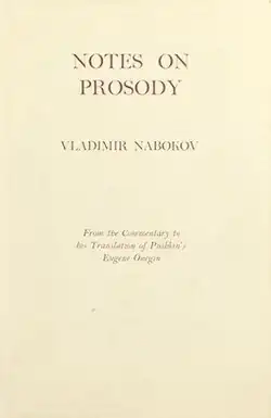The book Notes on Prosody by author Vladimir Nabokov compares differences in iambic verse in the English and Russian languages, and highlights the effect of relative word length in the two languages on rhythm. Nabokov also proposes an approach for scanning patterns of accent which interact with syllabic stress in iambic verse. Originally Appendix 2 to his Commentary accompanying his translation of Aleksandr Pushkin's Eugene Onegin, Notes on Prosody was released separately in book form.[1]