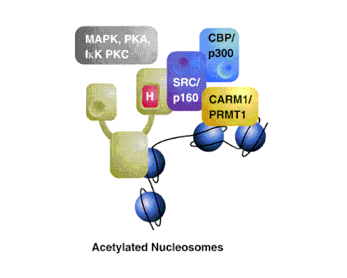 - ^ Chen, H.; Lin, R. J.; Xie, W.; Wilpitz, D. & Evans, R. M. (1999). "Regulation of hormone-induced histone hyperacetylation and gene activation via acetylation of an acetylase". Cell. 98 (5): 675–686. doi:10.1016/S0092-8674(00)80054-9. PMID 10490106. S2CID 14697597.