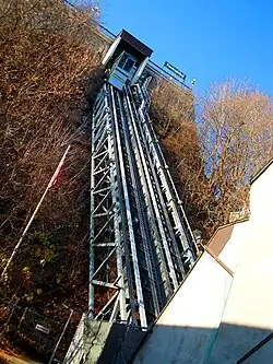 The funicular opened on November 17, 1879 as a water balance railway. The line was converted to electrical operation in 1907. On July 2, 1945, a major fire destroyed the structure, necessitating a rebuild that was completed in 1946. Since then, major renovations have taken place in 1978 and 1998. In 2004, it celebrated 125 years of operating.[2]