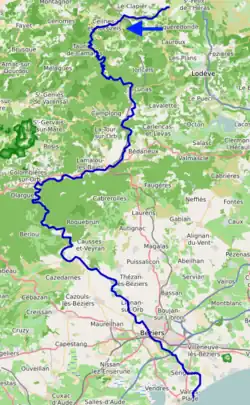 The Orb (French pronunciation: [ɔʁb]; Occitan: Òrb) is a 135.6-kilometre (84.3 mi) long river in the department of Hérault in the south of France.[1] It flows into the Mediterranean Sea at Valras-Plage. The river flows through the towns of Bédarieux and Béziers, where it is crossed by the canal du Midi on the Orb Aqueduct.