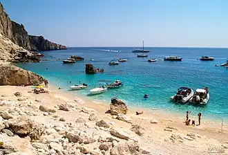 Most beaches on the island are accessible by boat, including Ammos, Molos, Kamini, Kanoula, Kontoskes, Rogi, Fyki, Xilosermi, and Aspri Ammos. It is a well-known island for underwater photography because of the peculiar geomorphology of the seabed and the many caves. Other points of interest are the Moshopontikas, Xylosermi, Fyki bay (where there is the sunken wreck of Sarah ship). Othonoi was frequently visited by the French naturalist Jacques Cousteau and his exploratory vessel Calypso.[5]: 27–28