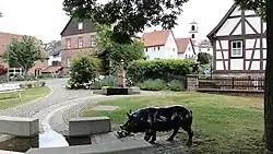 Only in the years between 1960 and 1970 did the village develop again. The village no longer had a rural character, especially after the roads were removed and the houses grew in size. Not only were homes built in the centre of the area, but they were also built on the lower hills. Among other things built were a school building, a Gymnasium, a deep well and an elevated tank for the water pipeline, a fire brigade equipment house, a town hall and a purification plant shared with the neighbouring municipality of Frammersbach.