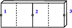 where is an incident electric field, is a current density, is the magnetic vector potential, is the scalar electric potential, and the electrical conductivity all at observation point . In the figures on the right, an orthogonal metal strip with 3 nodes and 2 cells, and the corresponding PEEC circuit are shown.