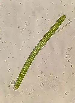 Pleurotaenium is a genus of green algae, specifically of the desmids (Desmidiaceae).[2] It is a cosmopolitan genus, with about 50 species.[3] Members of Pleurotaenium are found in freshwater habitats, and may be found in acidic, neutral or alkaline waters.[4]