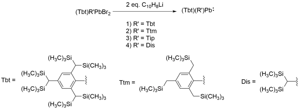 Transmetallation with [((CH3)3Si)2N]2Pb as the Pb(II) precursor has also been used to synthesize diarylplumbylenes,[6] disilylplumbylenes,[7] and saturated N-heterocyclic plumbylenes.[8]
