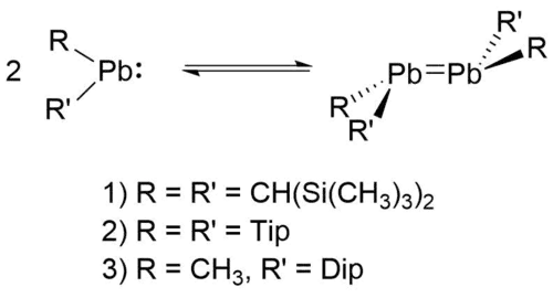 - ^ Klinkhammer, Karl W.; Fässler, Thomas F.; Grützmacher, Hansjörg (1998). "The Formation of Heteroleptic Carbene Homologues by Ligand Exchange— Synthesis of the First Plumbanediyl Dimer". Angewandte Chemie International Edition. 37 (1–2): 124–126. doi:10.1002/(sici)1521-3773(19980202)37:1/2<124::aid-anie124>3.0.co;2-c. ISSN 1521-3773.
