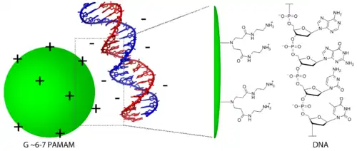 - ^ Bielinska AU, Chen C, Johnson J, Baker JR (1999). "DNA complexing with polyamidoamine dendrimers: implications for transfection". Bioconjugate Chemistry. 10 (5): 843–50. doi:10.1021/bc990036k. PMID 10502352.