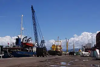 Port of Bitung (Indonesian: Pelabuhan Bitung) is a seaport located on Jalan D.S Sumolang in Bitung, North Sulawesi, in Indonesia. It is the largest port in the province, consists of both container and passenger ship ports.[3] The port serves as a hub for most exports originated from North Sulawesi and other areas of eastern Indonesia to destinations such as Philippines and Vietnam.[4][5] There are also ferry routes linking Bitung with General Santos and Davao City.[6][7]
