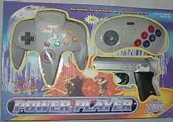 The Power Player Super Joy III (also known as Power Joy, Power Games, and XA-76-1E) is a famiclone video game console. It is notable for legal issues based on the violation of intellectual property rights held by Nintendo and its various game licensees. Manufactured by Sinango, the Power Player has been sold in North America, Brazil, Europe, Asia, and Australia.