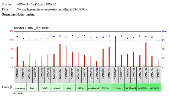 - ^ a b "PRR12 Gene - GeneCards | PRR12 Protein | PRR12 Antibody". GeneCards. Retrieved 2014-01-26.