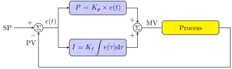 - is the error (SP is the setpoint, and PV(t) is the process variable),