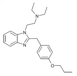 Protodesnitazene is a benzimidazole derivative which has been sold as a designer drug, and has potent opioid effects. It has been identified in Canada, Australia and the United Kingdom, first appearing in early 2025.[1][2][3][4][5]