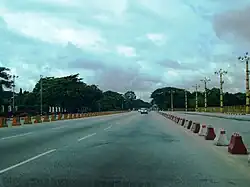 Pyay Road (Burmese: ပြည်လမ်း, formerly Prome Road) is a major thoroughfare of Yangon, Burma and the first stage of the National Highway 1 which eventually leads to Mandalay. It crosses the western-central side of the city in a north–south direction. It contains many important buildings, including banks, hospitals, several government buildings, hospitals, major hotels, various television and radio stations, including the National Museum, the old National Parliament building, People's Square and Park, Myanmar Radio and Television Building, Junction Square, Yangon University, and leads up to Inya Lake.