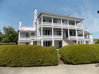 Quarters 1, also known as Building 1, is a historic officer's quarters located at Fort Monroe, Hampton, Virginia. The original section was built in 1819, and consists of a three-story, central block, double pile residence with flanking, two-story wings in the Federal style. The northern wing, containing a large kitchen and cistern below, was erected as a separate building in 1823 and later connected to the main building in 1871. The 1871 connecting structure includes an octagonal solarium. The front facade features two-story porches, with carpenter Gothic railings, that were added during the last quarter of the 19th century. The interior features an elliptical staircase and an elliptical dome.[3]
