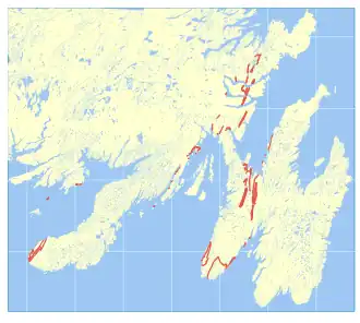 - ^ a b c d Normore, L. S. (2012). "GEOLOGY OF THE RANDOM ISLAND MAP AREA (Nts 2C/04), Newfoundland". Newfoundland and Labrador Department of Natural Resources Geological Survey Report. 12: 121–145.