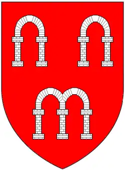 The estate of Arches within the manor of East Hendred in Berkshire had long been held by a family which was called Arches or D'Arches[7] Their heir was the family of Eyston. John Arches (d. circa 1405) of Arches was elected four-times as MP for Berkshire, in 1384, 1390, 1402 and 1404.[8] A family relationship between the Arches families of Arches and Eythrope, which both bore the same canting arms of Gules, three arches argent,[9] was suggested by Bertha Putnam in her work on Sir William Shareshull,[10] but as was remarked upon by Woodger, her suggestion that Sir Richard Arches (died 1417) was the son of Ralph Arches, son of John Arches (d. circa 1405) of East Hendred was clearly physically impossible.[1]