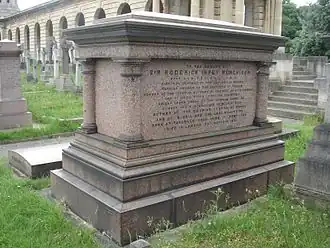 Murchison died in 1871 and is buried in Brompton Cemetery, London, near the north end of the arcade on the west side of the central path.