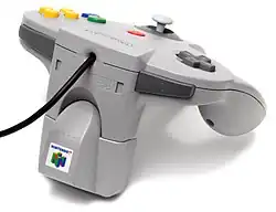 ![]() A Nintendo 64 controller with the Rumble Pak attached | |