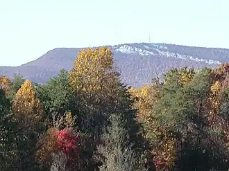 The Sauratown Mountains were named after the "Saura", a Siouan-speaking Native American tribe that lived in the area before European colonists arrived in the early 18th century.[1] The range consists of rugged, heavily forested ridges frequently broken by large quartzite rock cliffs that can be seen for miles. The Sauratown Mountains are known for offering some of the best rock climbing in North Carolina. The highest point in the Sauratown Mountains is Moore's Knob, which rises to 2,579 feet (786 m). South Stokes High School, a local high school located south of the mountains in Walnut Cove, has the Saura Indian as their mascot.