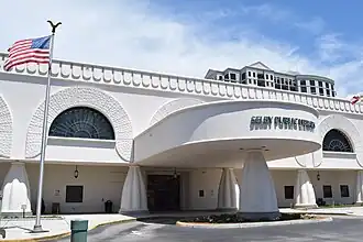 The Selby Public Library (originally known as the Sarasota Public Library) originated when the Town Improvement Society established a library room at Five Points with a fund of $65, equivalent to $1,000 in 2023. It first began with a contribution of books and 51 subscribers. In 1913, the Woman's Club took over the library then eventually in 1915 it was relocated to the east wing of the Women's Club. The Sarasota City Council soon appropriated $150 a year to locate the library in the old schoolhouse on Main Street rent free for five years. In 1940 the Women's Club requested that the city take absolute control of the library so the city moved it to Chidsey Library. As more individuals relocated into the county by the mid 1970s, the increasing need for additional books and materials was evident. The library soon progressed to the Boulevard of the Arts site on June 24, 1976, and Sarasota County Historical Resources took over its operation. After a large contribution of $500,000 from the William G. and Marie Selby Foundation it was named Selby Library.[2] The Selby Foundation provided the largest single contribution to building the Selby Public Library. Other funds came from city, county, and federal governments and private donations.[3] William and Marie Selby had been boosters of Sarasota, beginning around 1910 when they first came and visited the city for winter. With money from the Selby Oil and Gas Company, the Selby's were able to invest much wealth into Sarasota, including the donation provided to the library by their trust.[4]