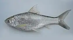 The Siamese mud carp (Henicorhynchus siamensis) is a species of freshwater cyprinid fish, a variety of Asian carp native to the Mekong and Chao Phraya Rivers in Southeast Asia, especially in Cambodia, Laos and Thailand.[6] It is very common in floodplains during the wet season and migrates upstream in the Mekong starting in Cambodia.[7]