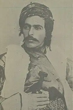 In 1919, Simko sent a letter to the British civil commissioner of Iraq, demanding Kurdish independence.[23] Also in 1919, Yusuf Adl Mukarram ul-Molk, the governor of Iranian Azerbaijan, devised a plot to kill Simko by sending him a present with a bomb hidden in it.[24] At this time, government in Tehran tried to reach an agreement with Simko on the basis of limited Kurdish autonomy.[25] When Simko captured Mahabad in October 1921, some Kurds fell victim to the looting. Simko stated that he highly discouraged any violence against other Kurds, and claimed that he was not able to restrain his men who were used to pillaging after fighting. The Kurdish victims were robbed and left alive, although the Azerbaijani victims were all executed. The Azerbaijani towns of Miandoab, Binab, and Maragheh sent letters of submission to Simko. At this time, Simko grew more powerful while having permanent ties with many Kurdish tribes. While controlling a large part of Iranian Kurdistan, his influence reached Luristan, as well as Iraqi Kurdistan, and Turkish Kurdistan.[26][27] Simko specifically targeted Assyrian and Azerbaijani communities for pillaging.[11] Simko was known among Iranian Azerbaijanis as the "Butcher of Azerbaijan".[28][29]