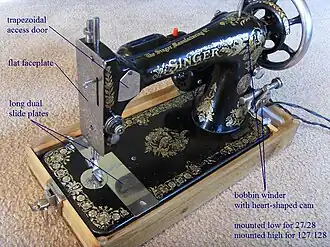 - ^ "Singer 28, 28K, 128, and 128K Vibrating Shuttle Sewing Machines".