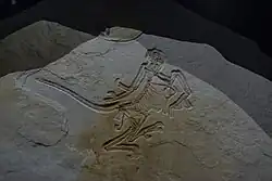 Researchers believed the animal likely died by drowning in a Jurassic Solnhofen lake, floated on the surface for some time, and then sunk to the lagoon floor where it was deposited in calcium-rich mud. The specimen's exquisite preservation suggests a relatively short time in the lake before being deposited, perhaps on the order of hours or days.[46]