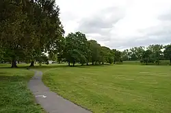 In Spring of 1905, the driving park's races came to an end when, following a series of failed negotiations the city's park commission acquired the land by eminent domain, renaming it at the time Riverside Park.[18] During that summer the city hired the respected Olmsted Brothers firm, sons of Frederick Law Olmsted of Central Park fame, to redevelop the site as a mixed use park, following a year of study their plans, which included a cricket pitch, baseball fields, a wading pool, track, and gym facilities, were completed in the summer of 1906.[19][20]
