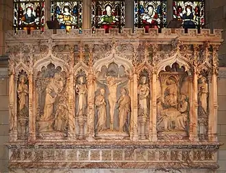 The monuments in the church include an unnamed early English foliated cross gravemarker (now in the porch), and the following named memorials:[1][8]