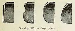 The other major factor is the point shape. The most common is the round or Dutch point, with the French point being fairly common. The square point is also known as an American point, and is more common on razors from the USA. There is also the Spanish point, Spike point, and Barber's Notch. [25]