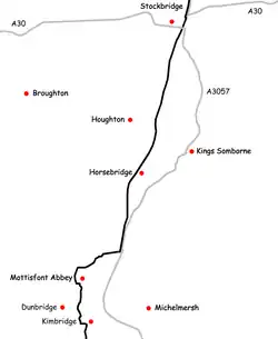 The trail also passes alongside Horsebridge railway station. Much of the route between Kimbridge and Chilbolton follows the route of the former Andover and Redbridge Railway.