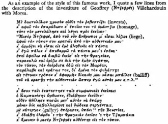 19. ^ John Schmitt, The Chronicle of Morea, [To Chronikon Tou Moreōs] A history in political verse, relating the establishment of feudalism in Greece by the Franks in the thirteenth century, Methuen & Co., London, 1904