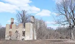 The Cliffs burned on February 22, 1986, due to vandalism and arson. Firefighters were unable to extinguish the fire because their heavy trucks sank in the clay earth surrounding the house. The clay had been trucked into the site in order to cover an area near the house used as a dump for refuse from various municipal construction projects.